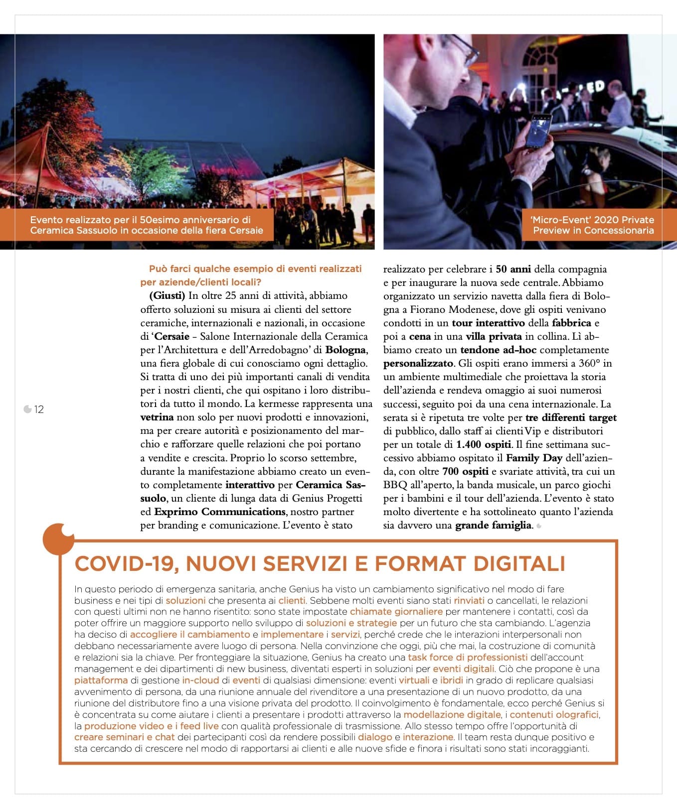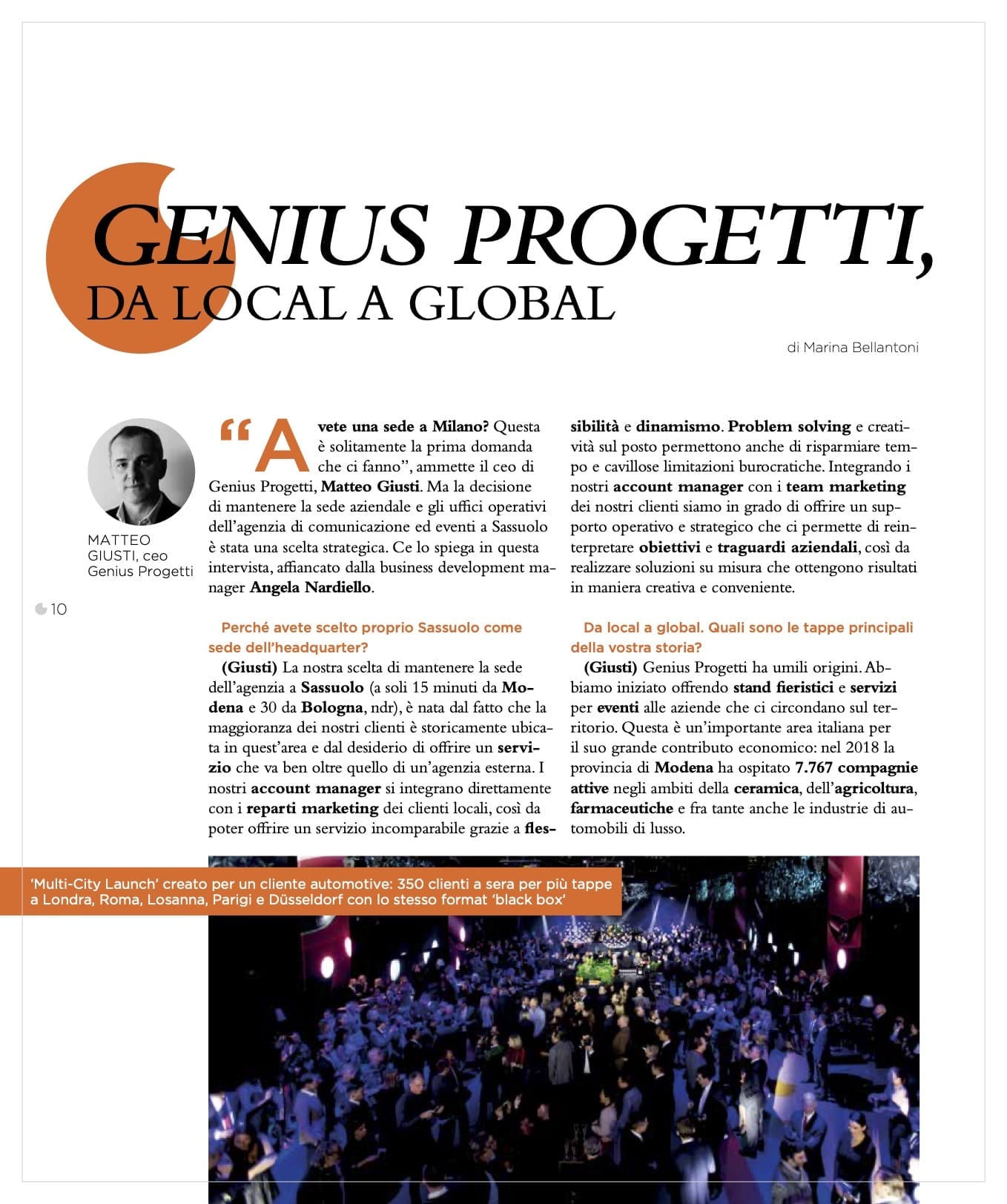 ‘Do you have an office in Milan?’, that’s usually one of the first questions we get asked” admits Genius Progetti CEO Matteo Giusti. “But the decision to keep the corporate HQ and operations office of the live communication and events agency in Sassuolo was a strategic one.” He explains it in this interview, together with the business development manager Angela Nardiello.