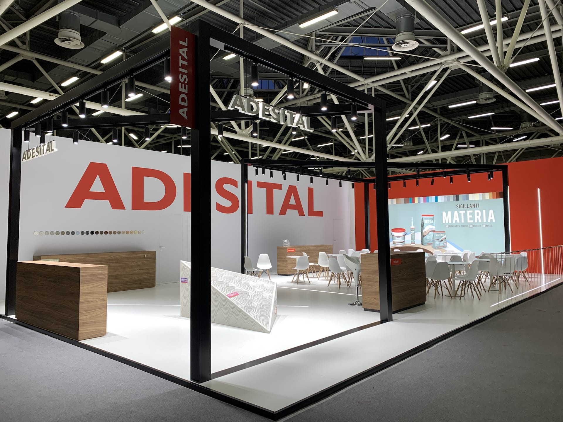Adesital Exhibition standVirtual stand development begins with the study of a concept and a design tailored to the company. We aim to highlight the brand’s characteristics, image and values by creating a 3D environment that ic accessible to clients, prospects and all the stakeholders. The company is always included in all the most important decisions regarding layout, mood, spaces and furnishings.