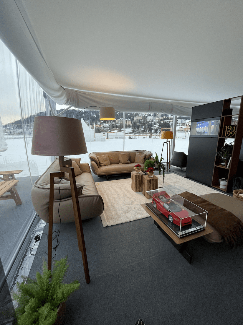 The location of the event was the snow-covered landscape of St. Moritz, Switzerland, an unusual context, difficult to make comfortable and elegant as in the expectations of the brand.