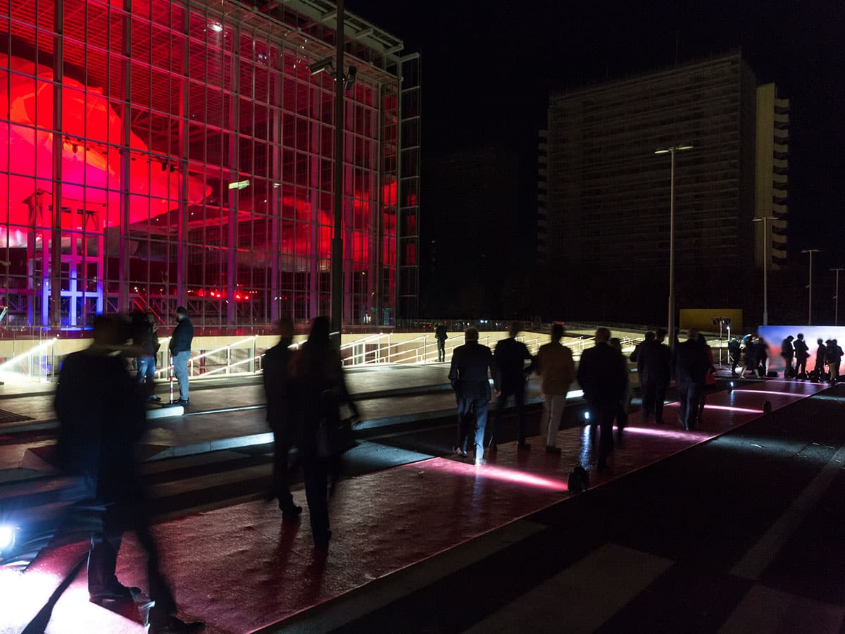 Rome was the first of the 5-city product launch tour throughout Europe. This private preview of a new car model was held in an exclusive venue: the Rome Convention Centre. This building was designed by renown architect Massimiliano Fuksas, in fact, it is known as the “Nuvola di Fuksas” or “Fuksas’ Cloud” because the central auditorium features an immense floating cloud in the central foyer which was dramatically lit for the occasion.