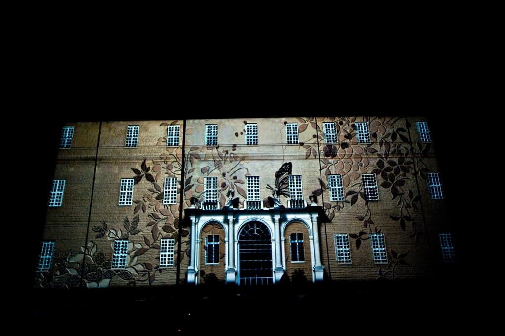 Guests were welcomed by a majestically lit pathway that led them to the entrance of the Ducal Palace. Here they were met by an architectural video mapping performance displayed on the facade of the building.