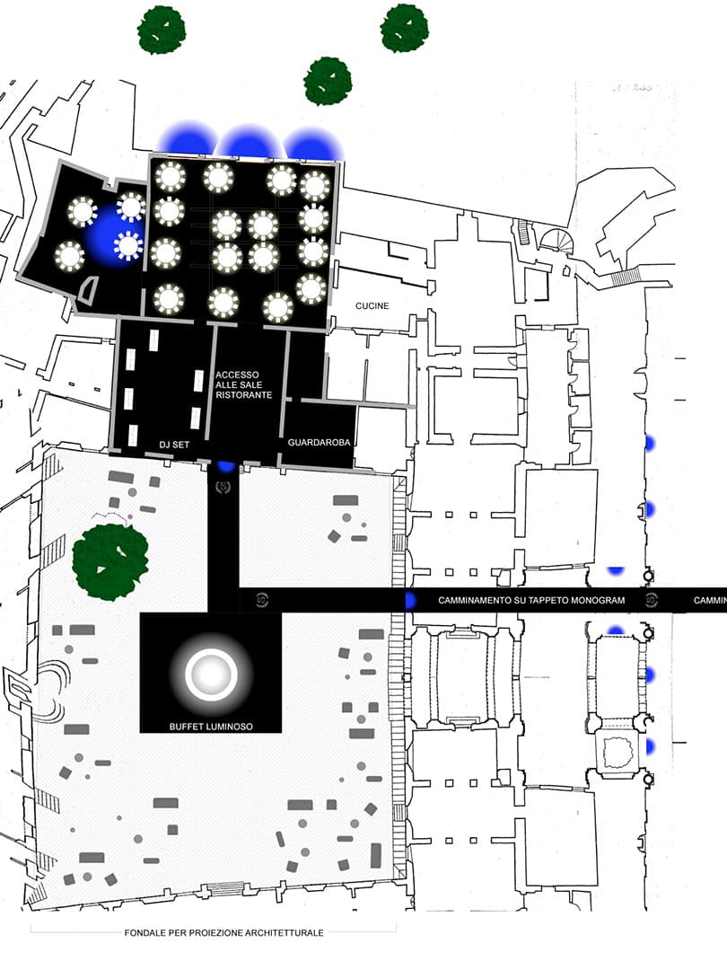 To highlight the grandiose and majestic venue, Genius Progetti created a full video mapping projection on the facade of the Ducal Palace of Sassuolo. The show was set to music and interlaced with elements from the client ceramic collection displayed harmoniously with the architectural elements of the palace’s facade.