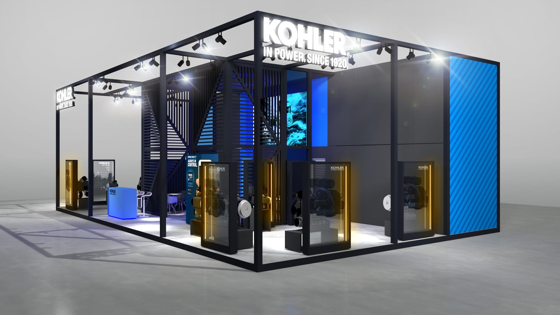 Kohler Engines relied on our team to design a brand new exhibition stand and participate in numerous fairs around the world between 2017 and 2021. It was necessary to provide a modular stand easily adaptable to different sizes and exhibition spaces.