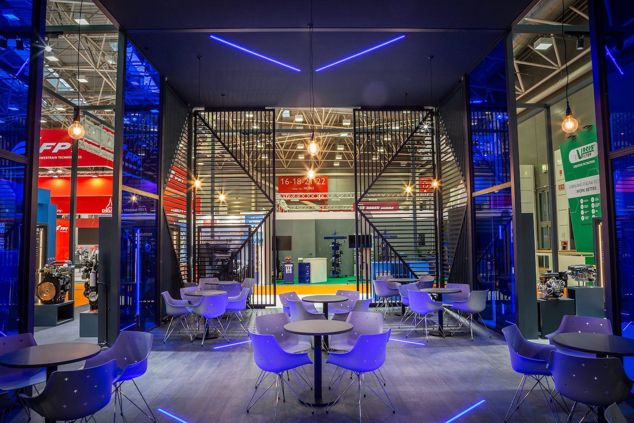 “K” was used is the 2019 edition of Agritechnica, the world’s leading trade fair for agricultural machinery that takes place every year in Hannover. Here, the large exhibition space available allowed the development of an exhibition area, an office area and a lounge area.