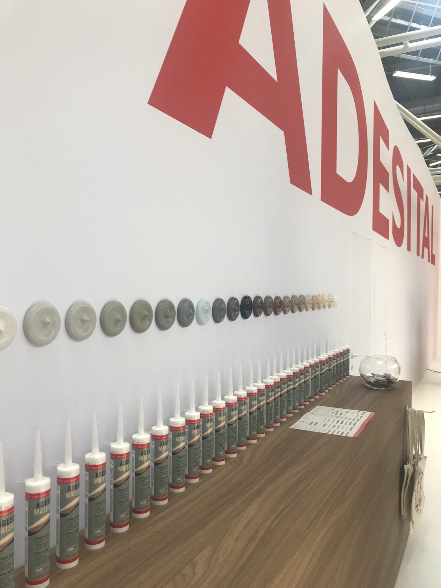 Contact usTo present the new line of colored building silicones in the best possible way: this was the goal of Adesital at Cersaie 2019. Our aim was therefore to create a stand with an ideal design to highlight these products.