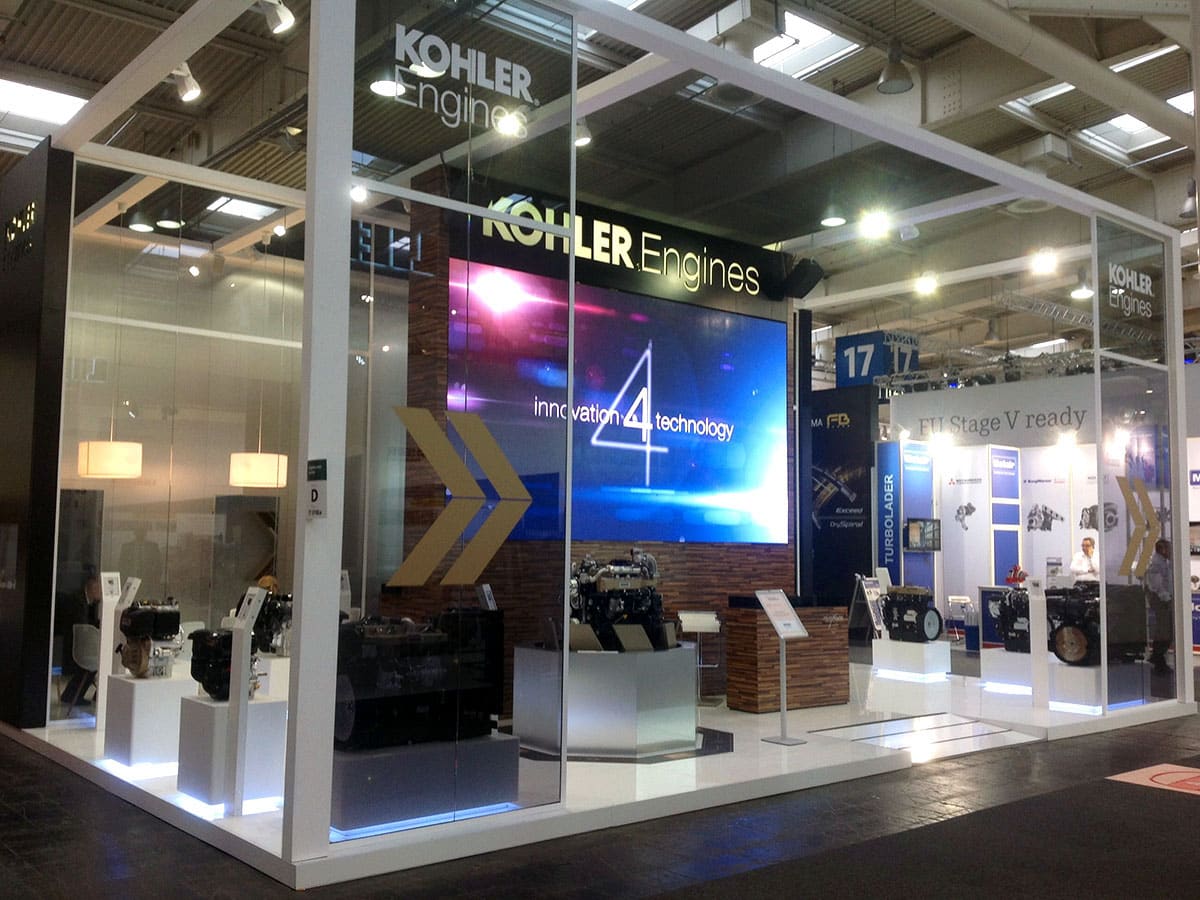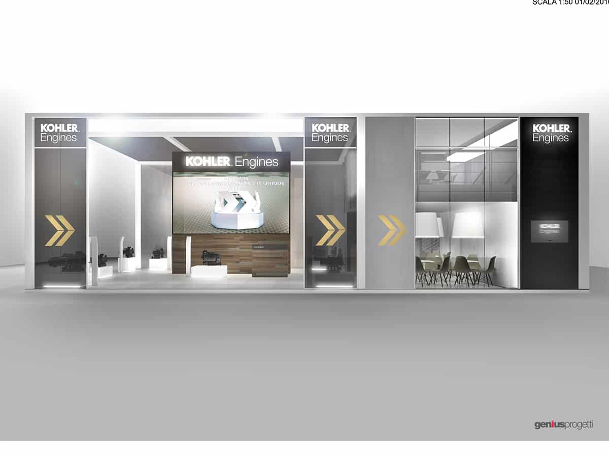 The stand concept was developed as a completely adaptable space for international trade shows. This way Genius Progetti was able to adapt “The light box” exhibition stand to the specific areas dedicated to Kohler Engines in multiple fairs over the years. The stand hosted thousands of visitors.