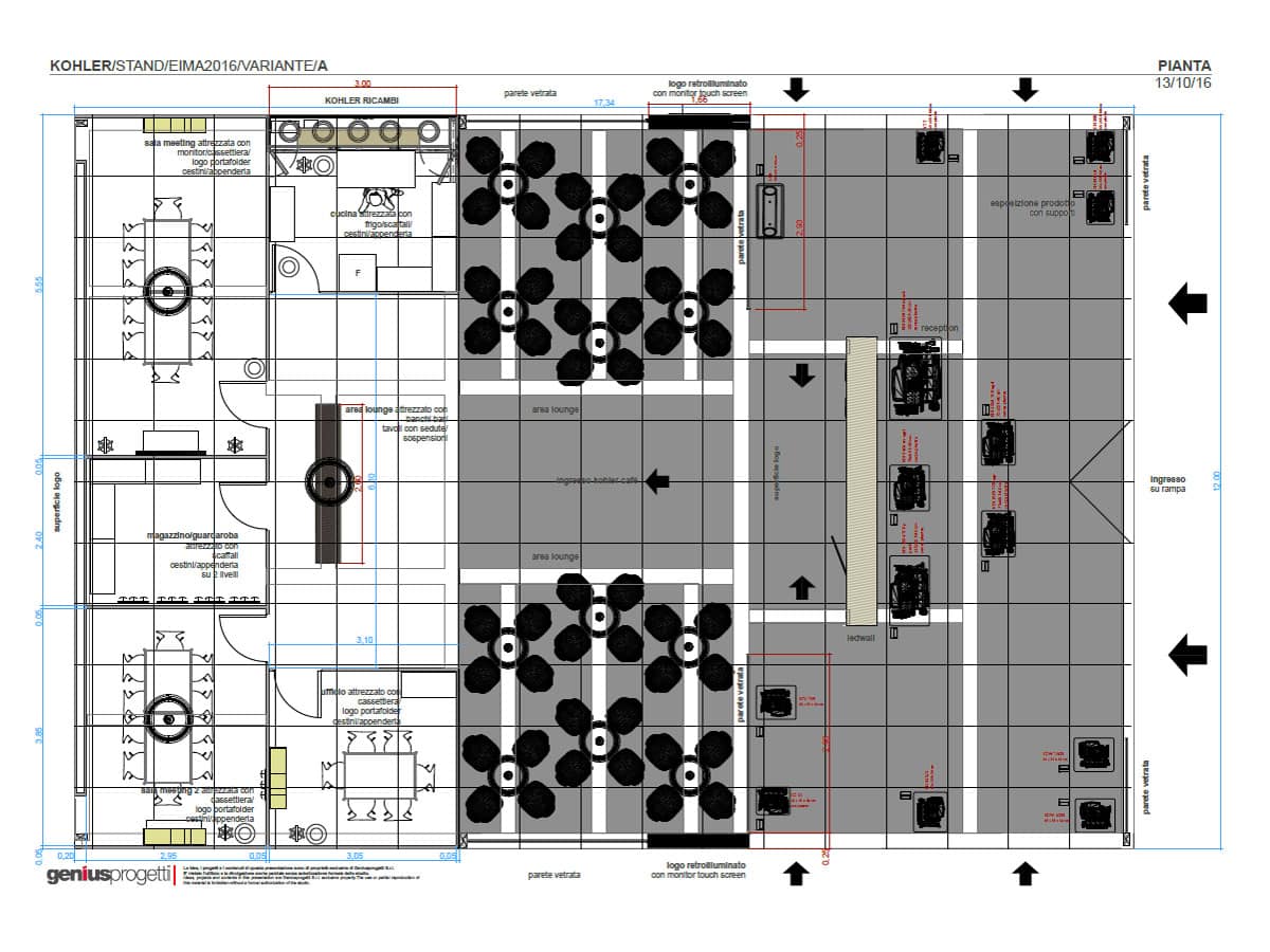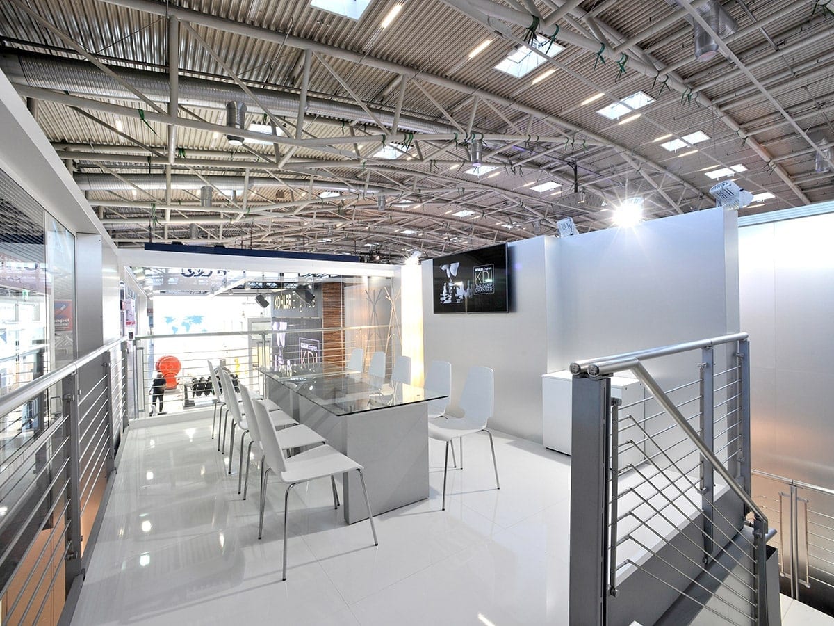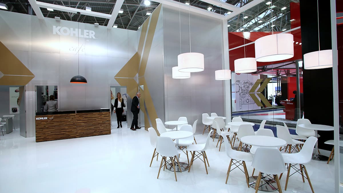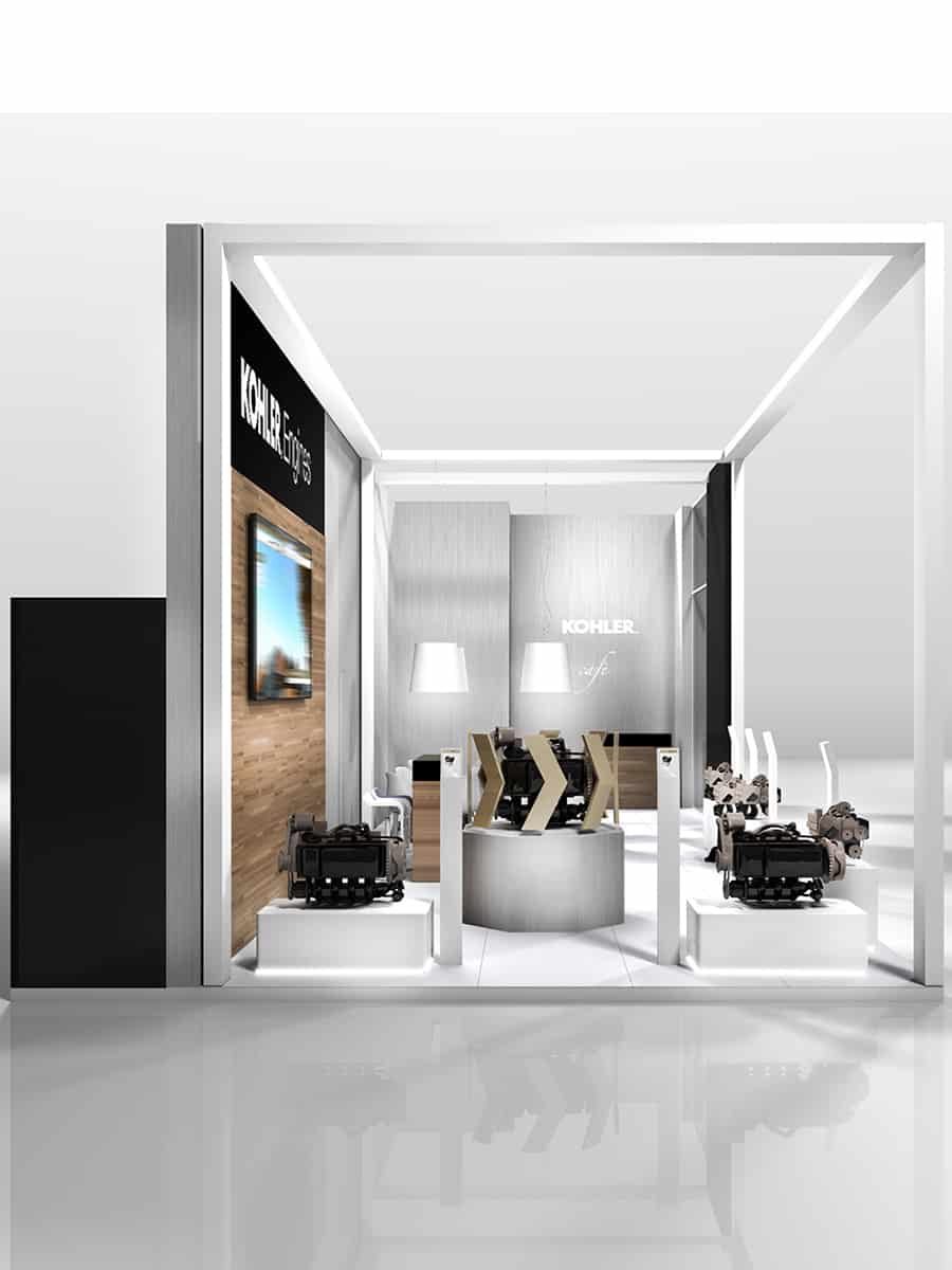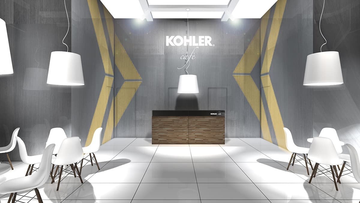 During the design phase, our client received full 3-D renders of the stand in order to best plan the layout and mood of it. Also, our technical department conducts on-site evaluations of each space dedicated to Kohler in the fairs to best incorporate electrical and build specifications.